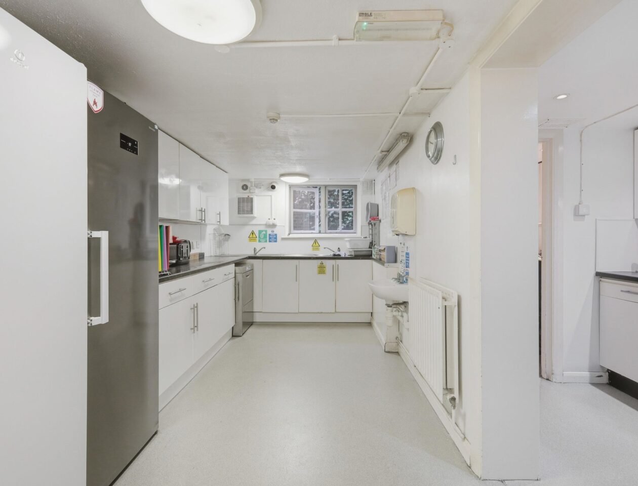 The property comprises a converted semi-detached former Victorian school building arranged over ground and first floors, with an adjoining demised playground area. Internally, the premises are configured to accommodate classrooms, staff rooms, offices, kitchen areas, and WC facilities, all accessed via a gated entrance on Half Acre. The interior benefits from laminate and lino flooring, plastered and painted walls, and a well-maintained finish throughout.