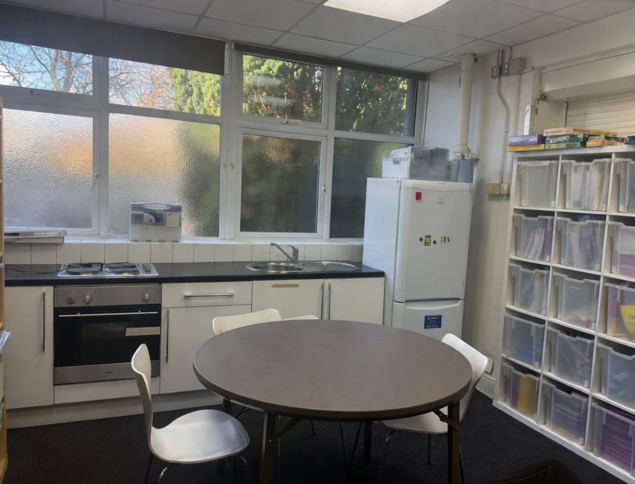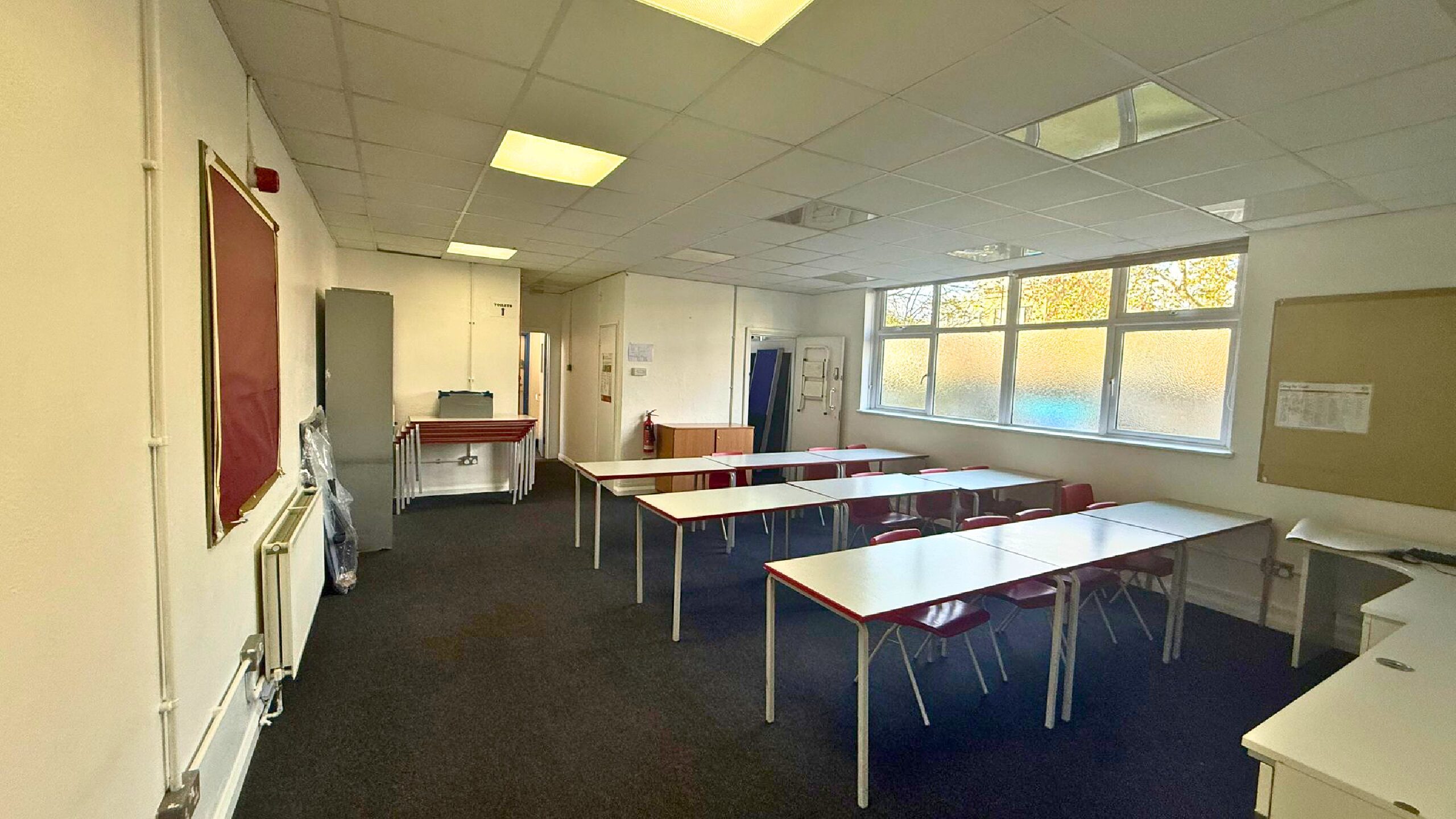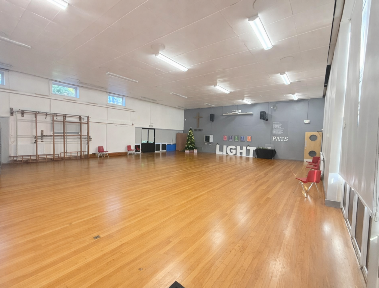 - A hall, office, and classroom space located within a primary school, offering a secure and accessible setting