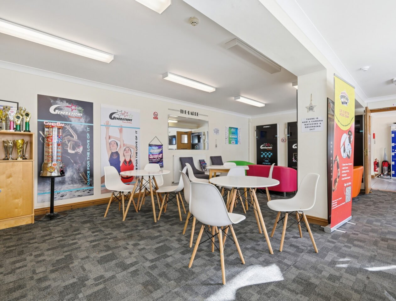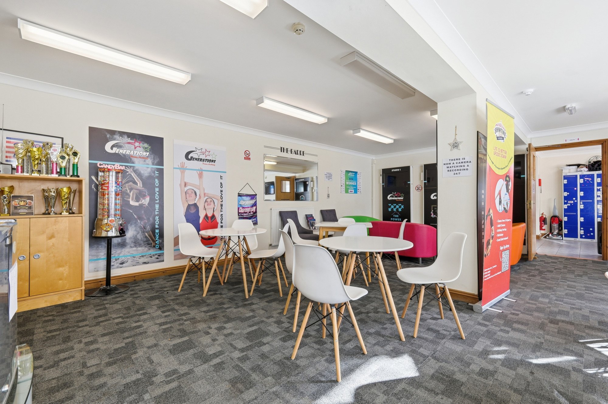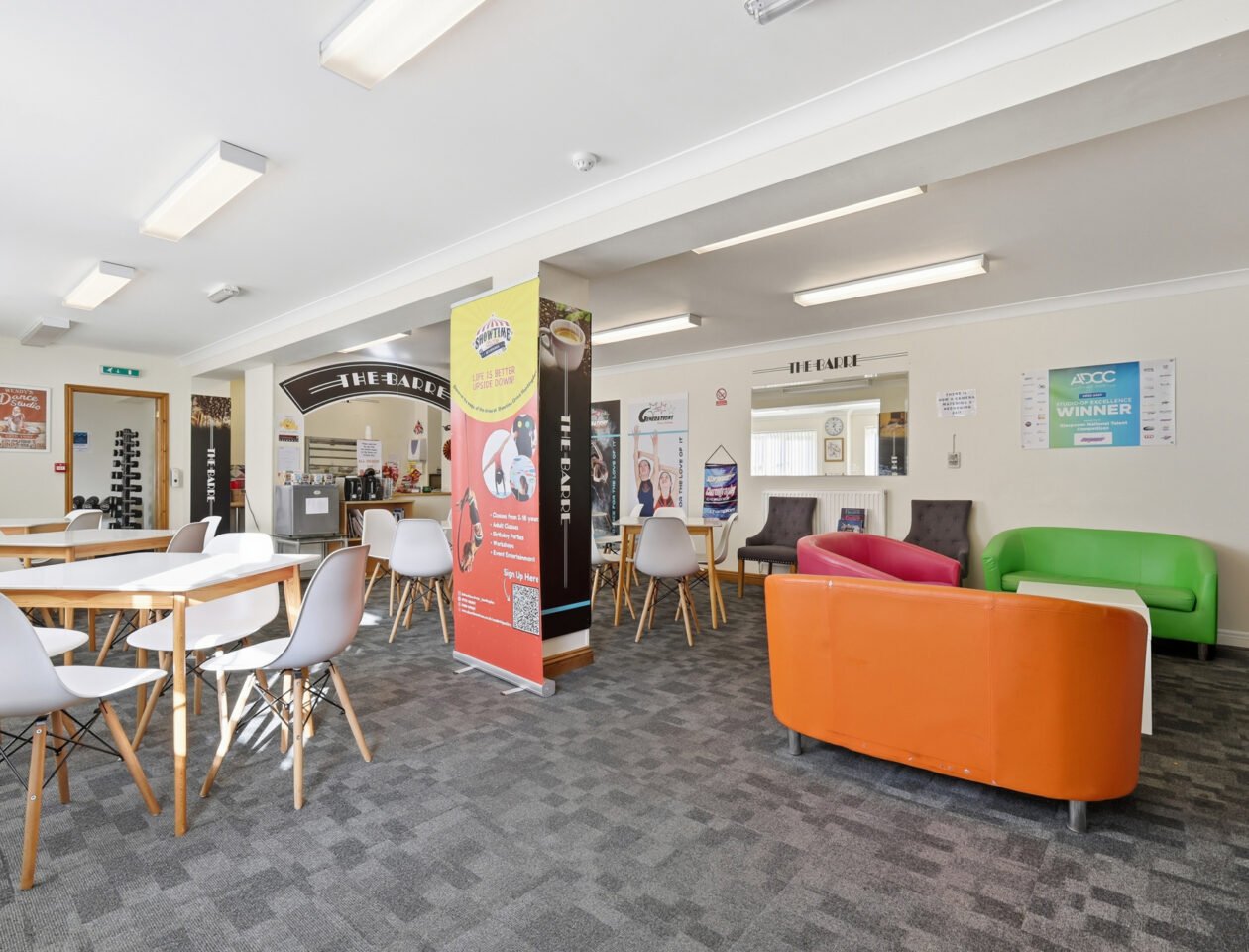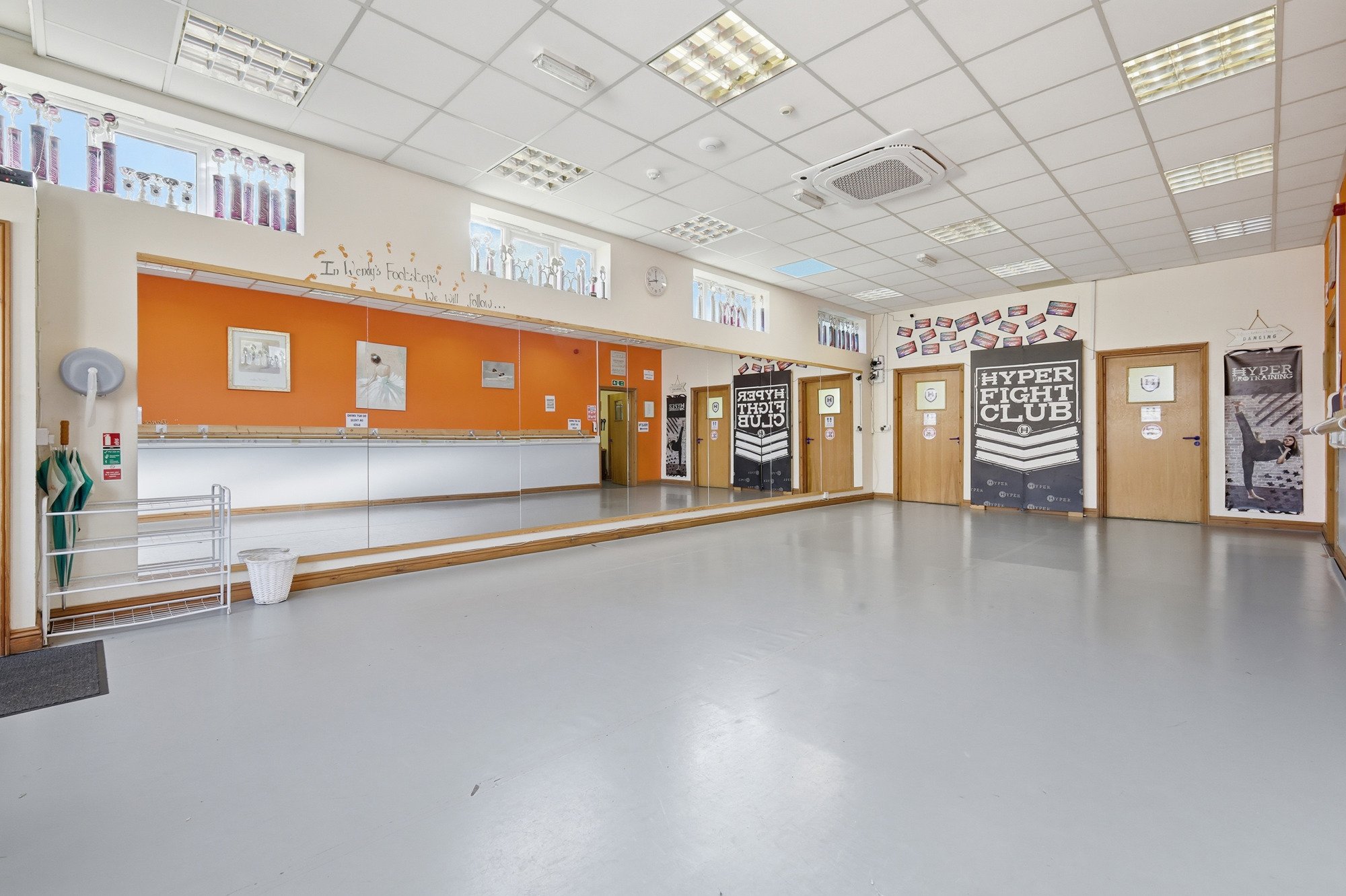 The property comprises two separate single-storey buildings, each offering well-presented and versatile accommodation. One building provides approximately 1,649 sq ft, featuring a former dance school layout with a generous open-plan studio and a series of supporting rooms suited to teaching, administration or specialist use.