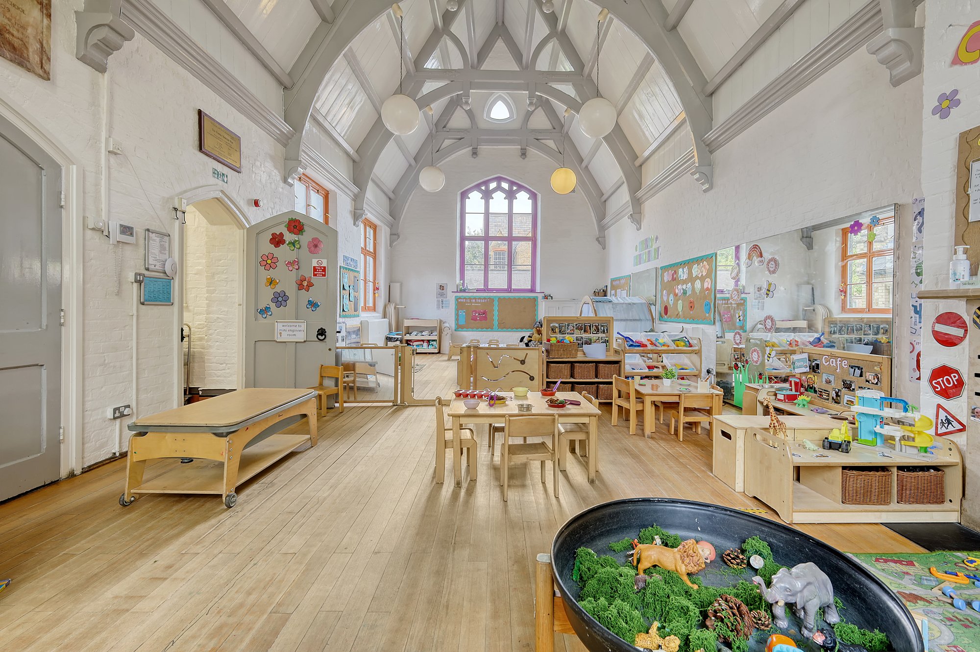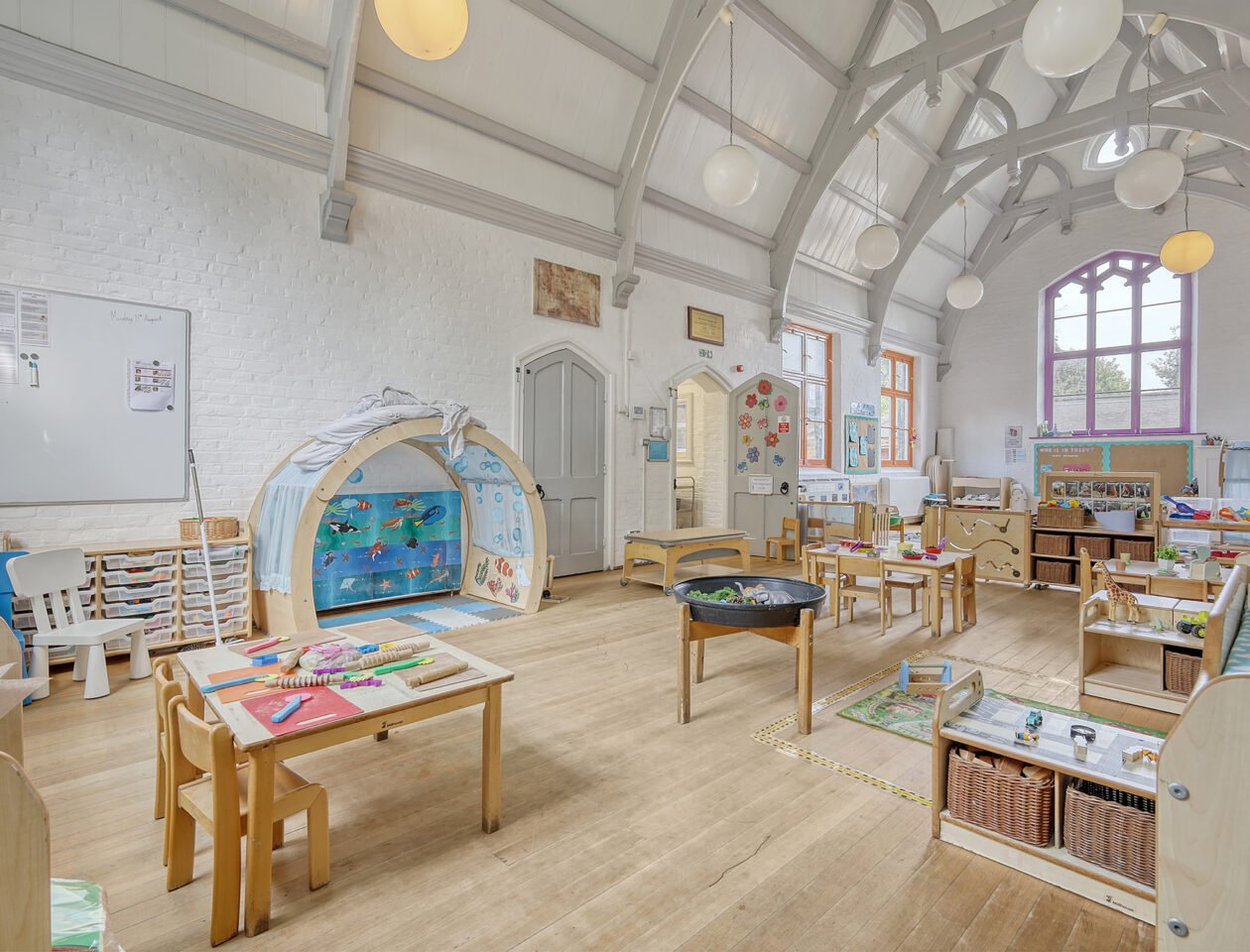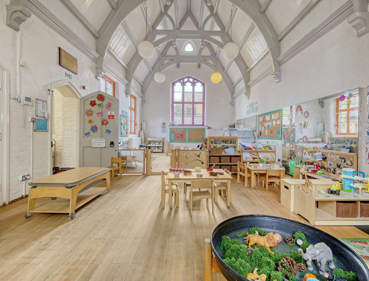 - Includes open playroom, hall, internal play area, kitchen, WCs and reception – with potential for reconfiguration