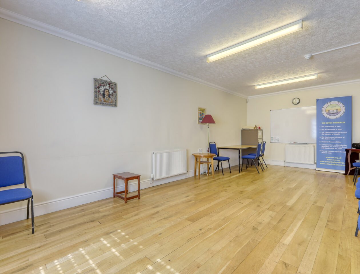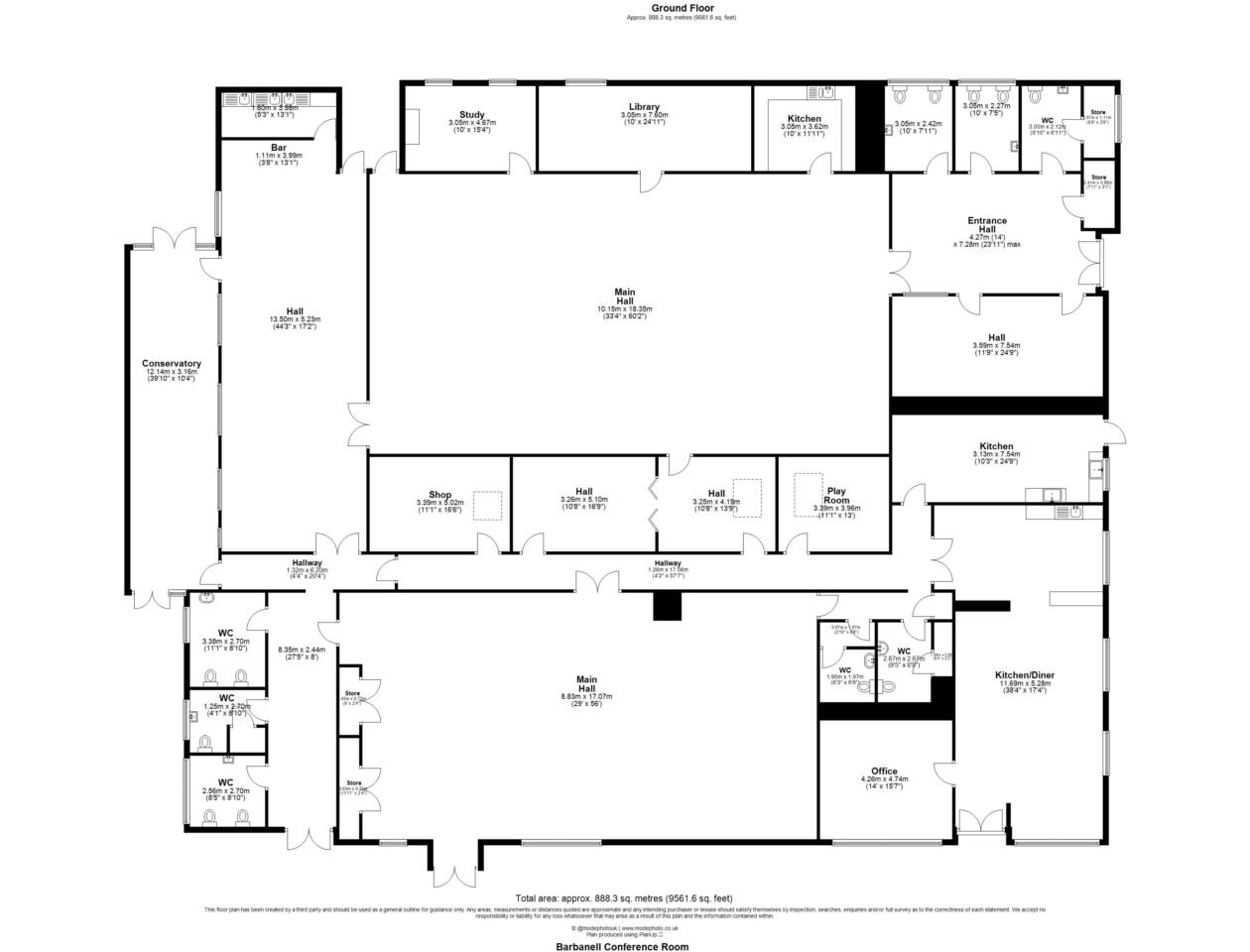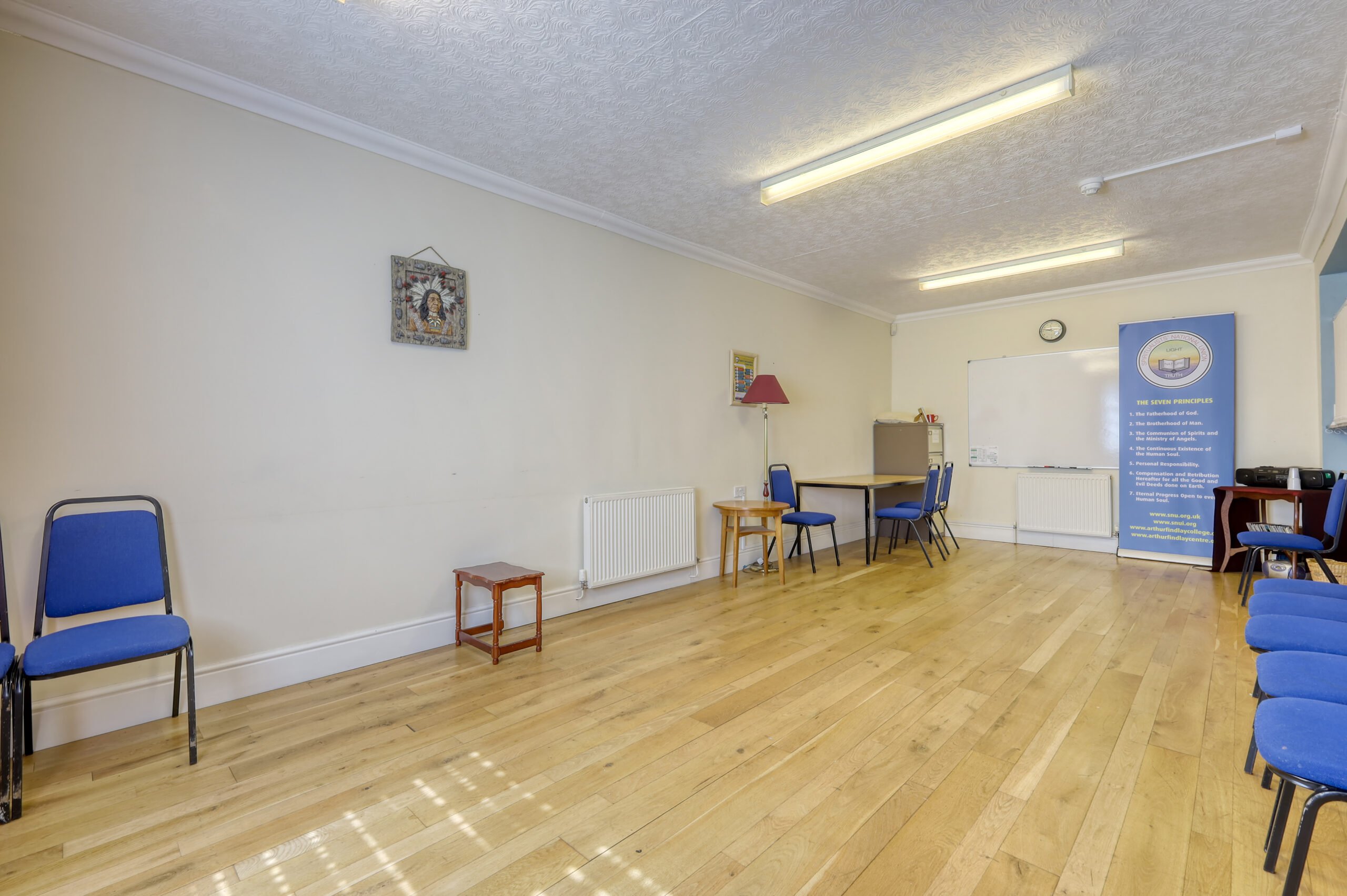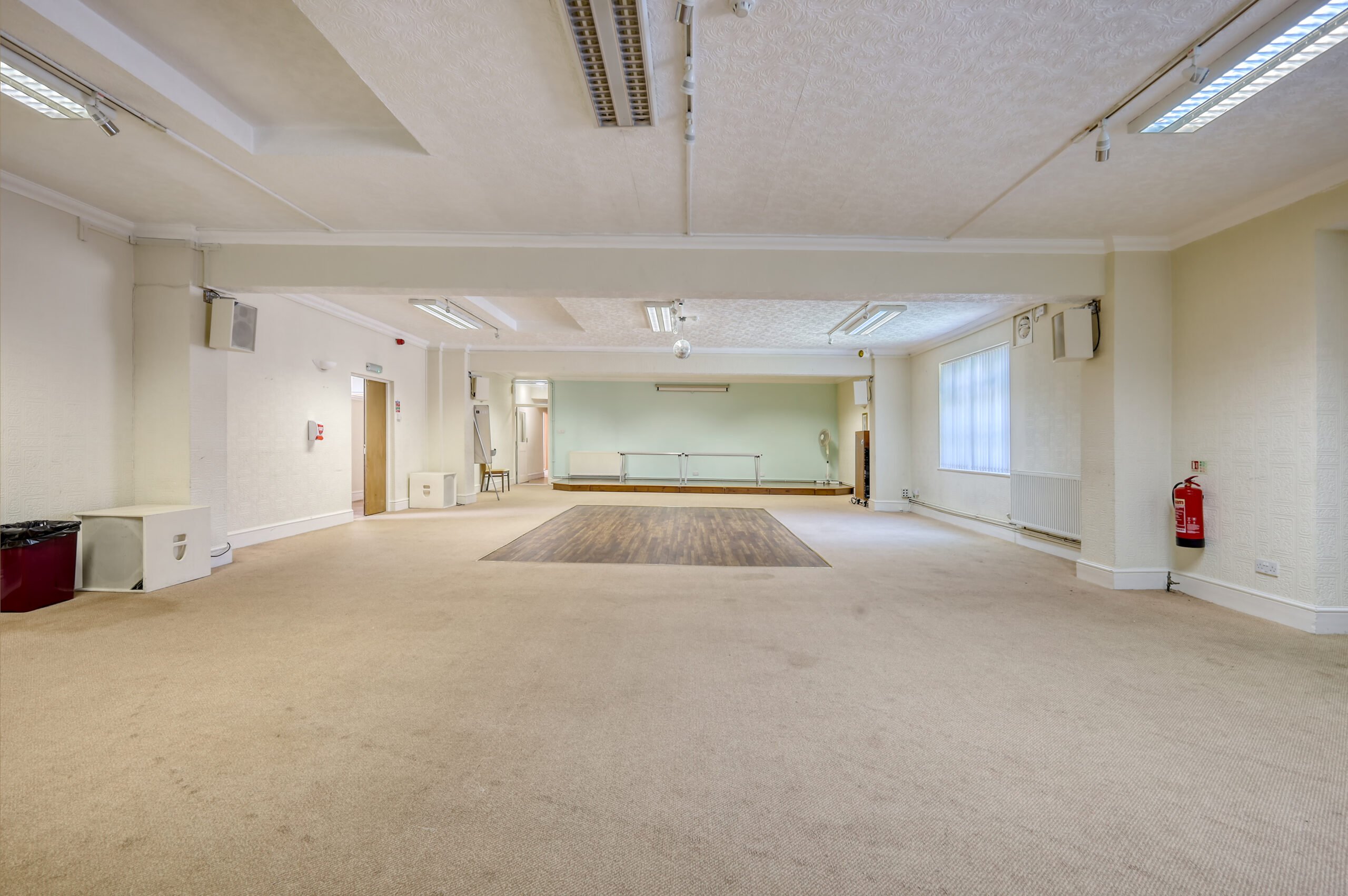 At the heart of the site lies a walled garden, directly north of which is a single-storey, brick-built F1 Use building providing a place of worship. There are two seperate conference halls each capable of seating 150+ people. There are further ancillary facilities including a kitchen, offices, meeting rooms, and WC’s. The building is maintained to a good standard and is approximately 9,561 sq. ft.
