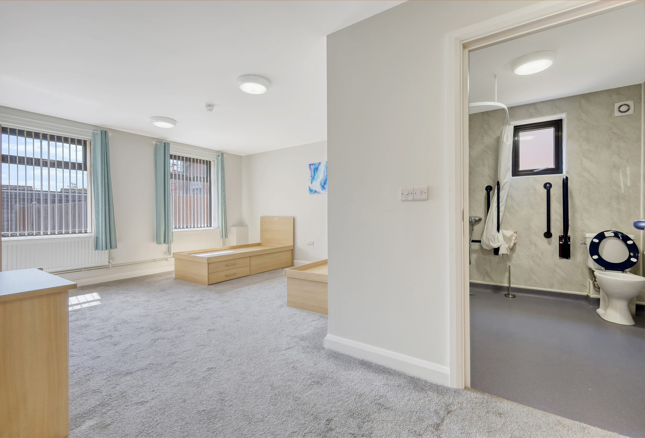 To the west stands a modern, two-storey residential block, constructed around 25 years ago and converted from office use in 2019. It offers 15 ensuite rooms (9 singles, 6 doubles), alongside a communal lounge with kitchenette and a laundry room. The building is well-presented and in good condition and is approximately 4,105 sq.ft. There is ample external areas demised for parking.