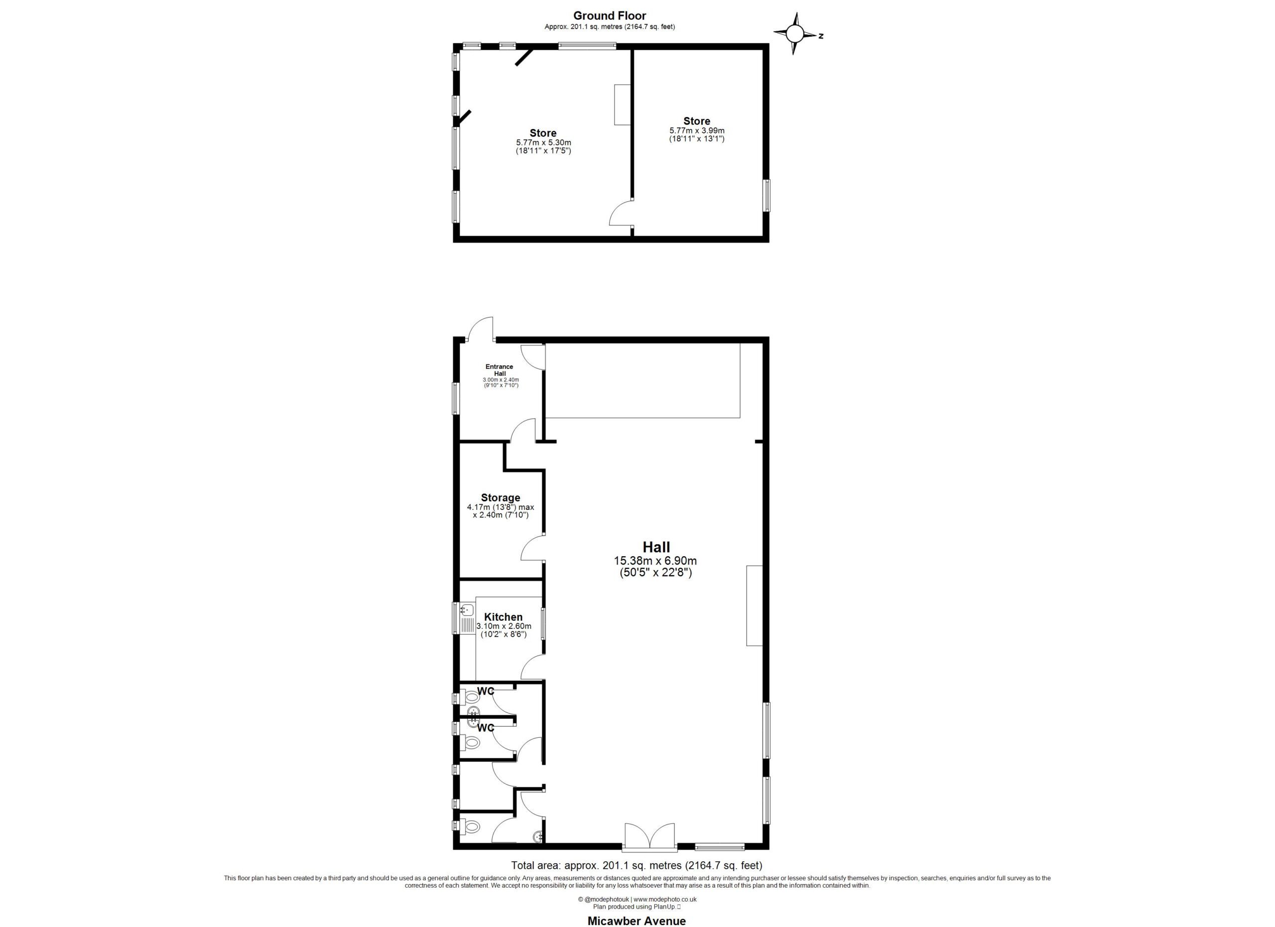 - Two separate buildings providing predominantly open-plan space with  kitchen, WCs and storage, offering a flexible layout