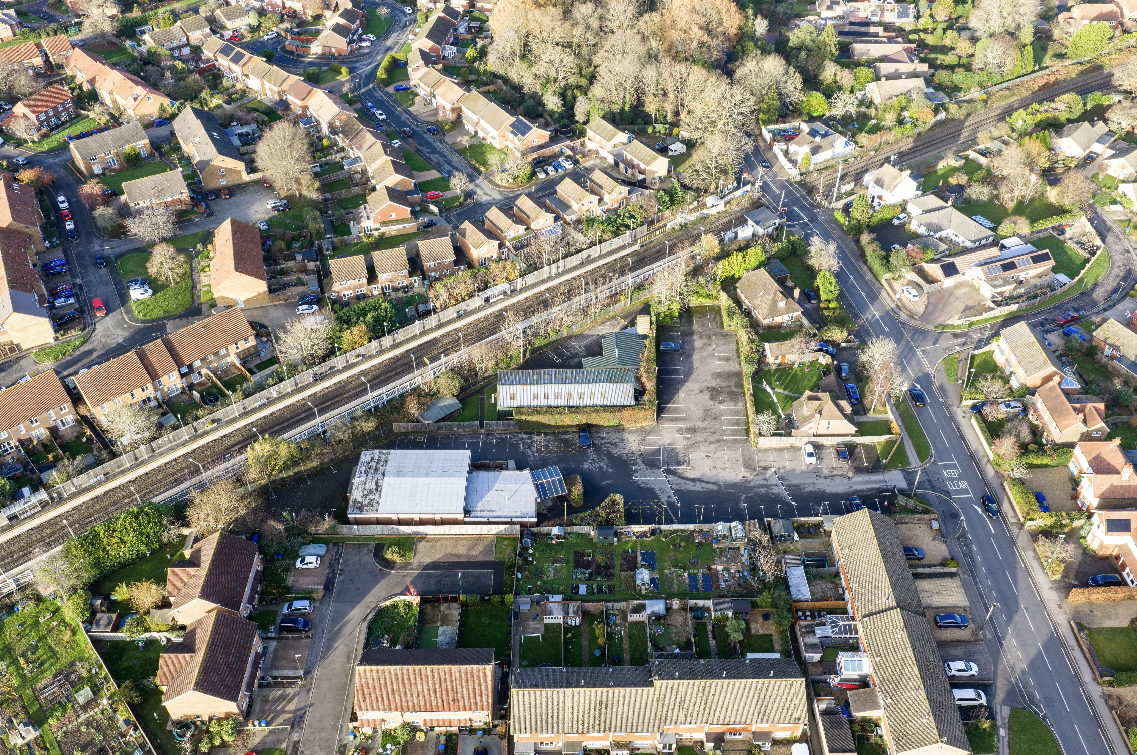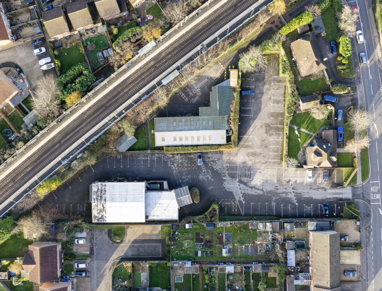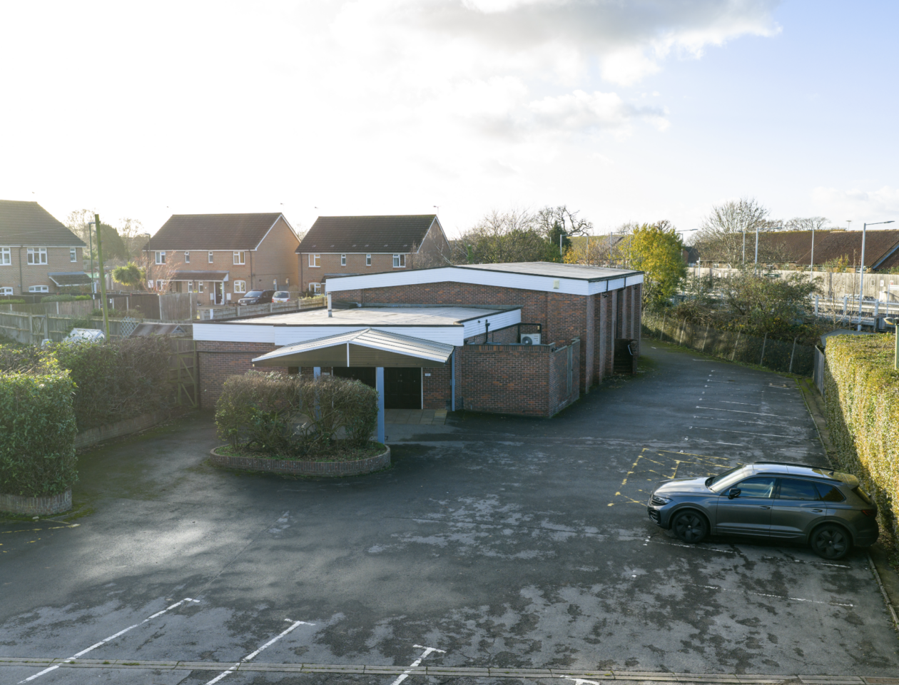 The property comprises a purpose-built hall offering a substantial internal area estimated at approximately 3,000 sq ft. The main auditorium is designed ‘in the round’ and comfortably accommodates around 400 seats. Upon entry, visitors are welcomed by a spacious foyer area which includes adjoining toilet facilities, an AV room, and a designated first aid space. The foyer provides direct access to the main hall, which features multiple fire exits that open directly to the surrounding car park, enhancing ease of access and safety. The overall site extends to approximately one acre and provides parking for around 80 vehicles. It occupies a triangular plot, bordered to the east by two detached residential properties fronting Rusper Road. The site benefits from a 5.5m wide access road with an adjoining 1.5m footpath leading to a gated entrance. The land slopes gently downwards from Rusper Road toward the nearby railway station and sits at a lower elevation than some of the surrounding properties.